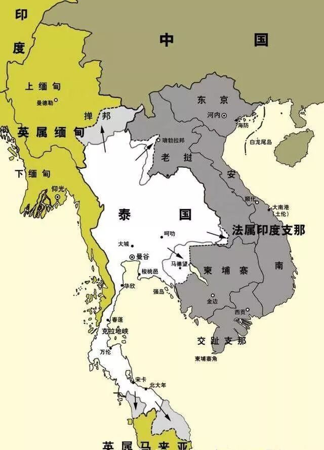 所以,在殖民地时期,中南半岛的泰国是唯一一个没有被殖民的国家——并不是因为泰国有多厉害,而是英法刻意没有殖民它。