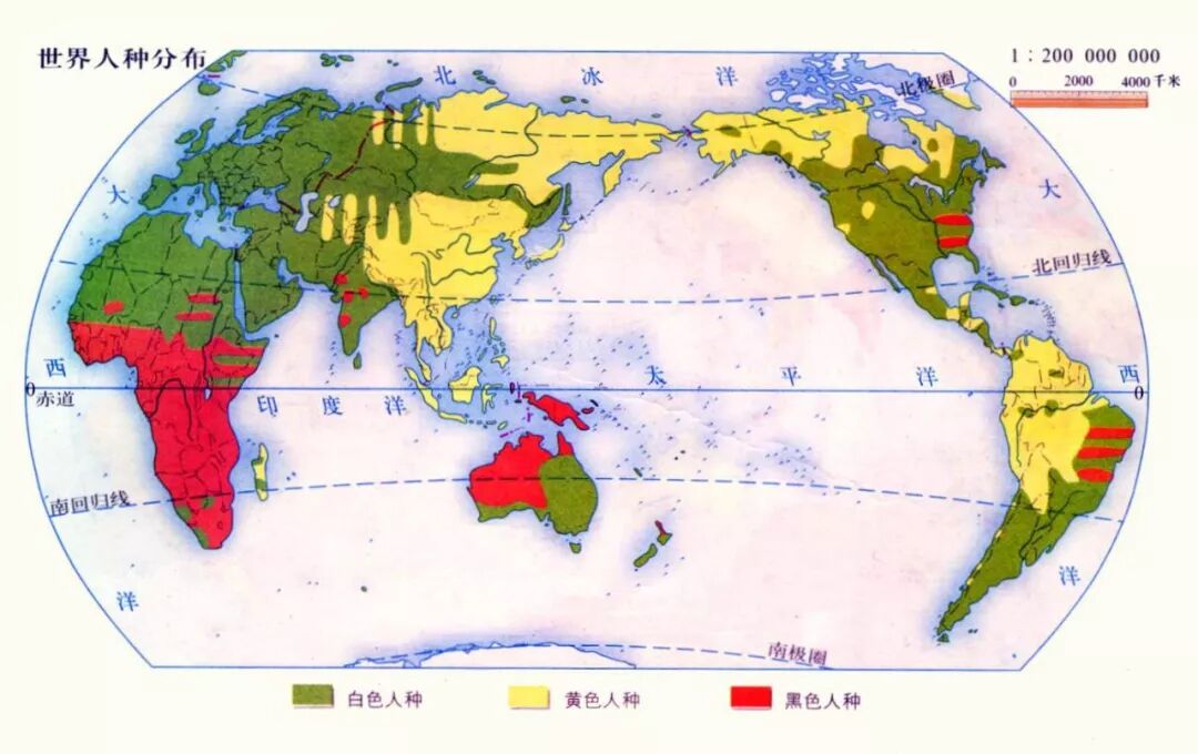 上面是从地理上分布的,但是如果我们再加上人种的话,那么我们就会发现俄罗斯的远东地区、东亚、东南亚等地区都是黄种人。