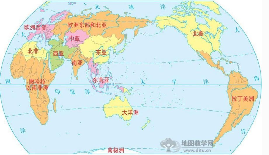 我们看看世界地图:在世界地理版图上,我们按照大的板块可以分为亚洲、欧洲、非洲、南美洲、北美洲和大洋洲等,但是在每个板块内部按照地形特点又可以分为若干个小的板块,比如在亚洲可以分为北亚、东亚、东南亚、南亚、中亚和西亚。