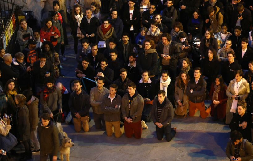 在巴黎圣母院附近,数以百计的人跪在地上虔诚的祷告,有人嘤嘤啜泣,有人满面哀荣,更有人悲痛疾呼:“今天是所有法国人最伤心的一天”。