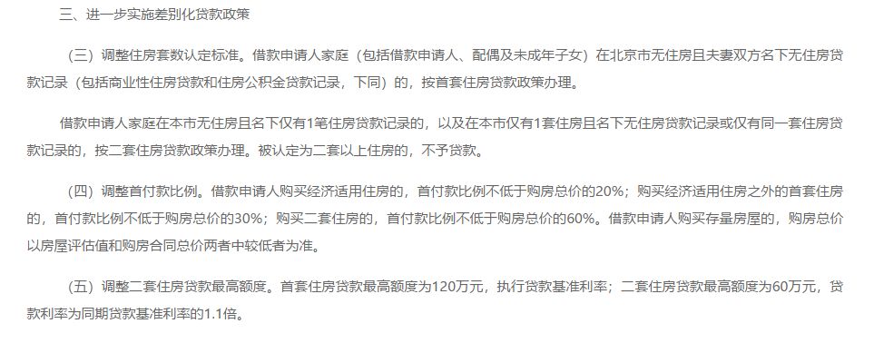 对二套房贷款实行“认房又认贷”,而且购买二套房的首付款比例不低于购房总价的60%、贷款最高额度为60万。