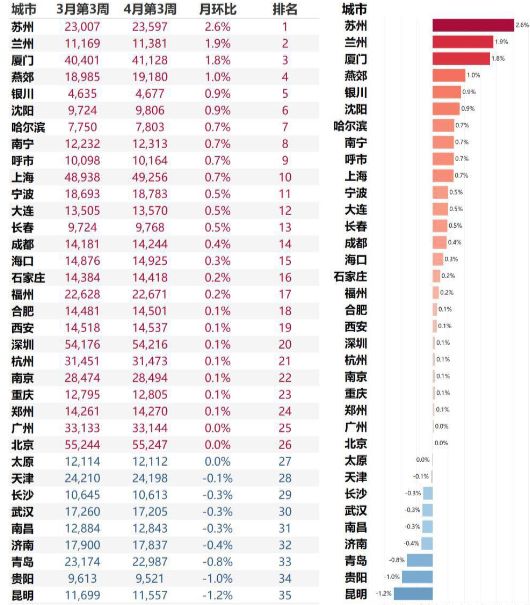一二线城市除了苏州和厦门外,其他城市基本上都低于2%,北上广深四大一线,都偃旗息鼓。