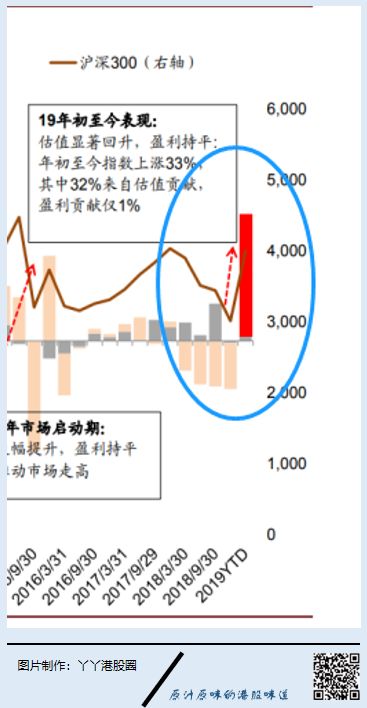 但在16-18年,A股盈利下滑,大市进行了同向下滑,随后由于盈利上升,大市又开始同向大涨。
