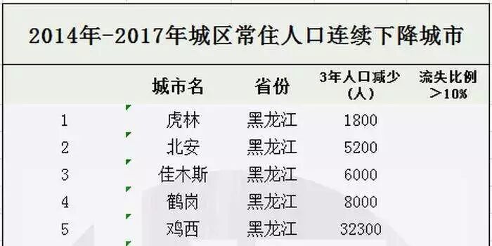 不过,判断收缩的最重要指标,并不是房价,而是人口。一份调查显示,近年中连续三年出现常住人口减少的城市有22个,其中16个在东北地区,基本都是一些资源型城市。