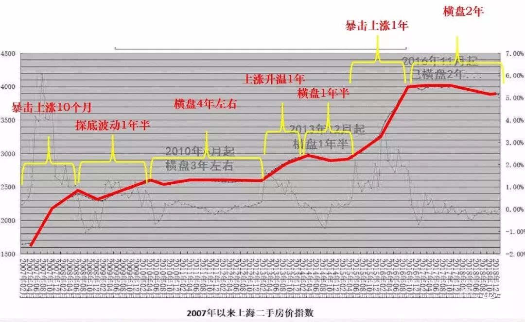 过去的12年时间里,上海的房价只有1年半的时间是在暴击行情中,1年半的时间在稳步升温。