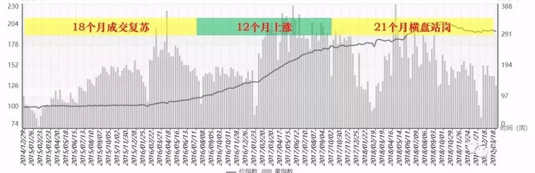 广州是用18个月的横盘、成交复苏,才换来一次8个月的暴击翻番;上海是用4年的横盘、成交复苏,才换来一次10个月的暴击翻番;北京是用2年的横盘、成交复苏,才换来一次7个月的暴击翻番……