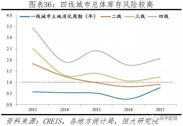 要知道,最近两年,三四线城市通过棚改释放出天量的土地,这些土地即将转化为新的商品房库存,加上三四线销售已经开始疲软,未来三四线的去化周期必然随之而上升。