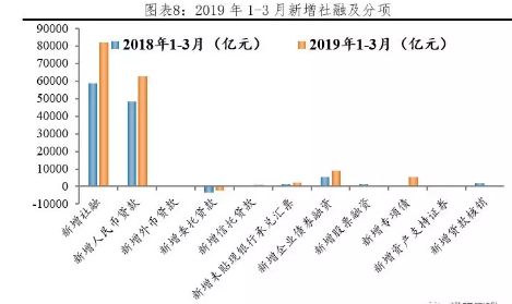 整个2019年第一季度社会融资规模增量累计为8.18万亿元,比去年同季度多增长2.34万亿元。