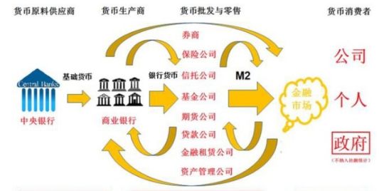我们日常会使用到货币,也就是现金,需要现金的时候会去商业银行取钱,主要是工、农、中、建四大行,而这些银行的货币就构成了M2(广义货币)。
