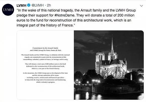 企业家和法国人民都很给力,在马克龙发出呼吁后很短时间内,法国人民在专门的捐款通道就捐助了大约7亿美元,国际大牌GUCCI、LV和美国的苹果公司也表示会拿出巨资帮助圣母院的重建工作。