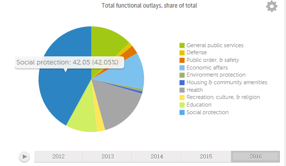 然后呢?然后我们看看他们的开支明细,这些数据来自法国政府网站和国际货币基金组织。