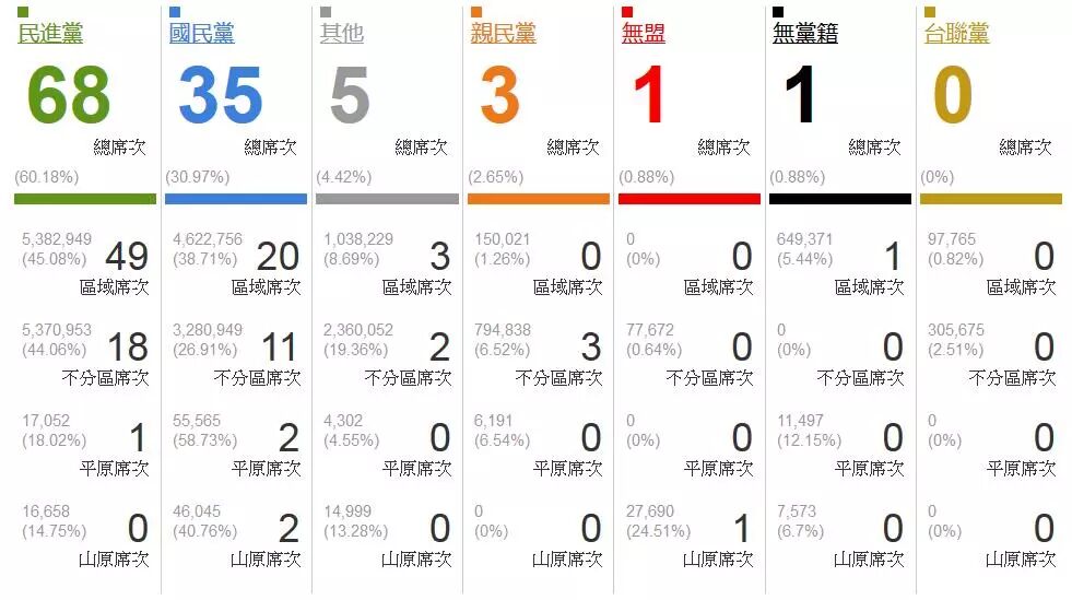 2016年台湾“立法院”选举结果