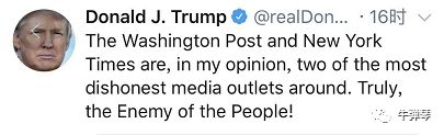 在我看来,华盛顿邮报和纽约时报,是两家最不诚实的媒体机构。真的,人民公敌!