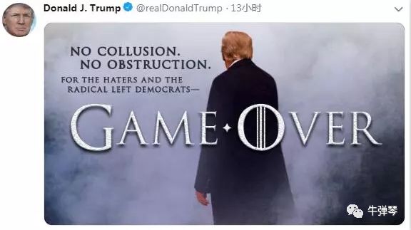 2,海报上还有一行字:“没有勾结,没有阻挠。对仇恨者和激进的民主党人来说——游戏结束了。”