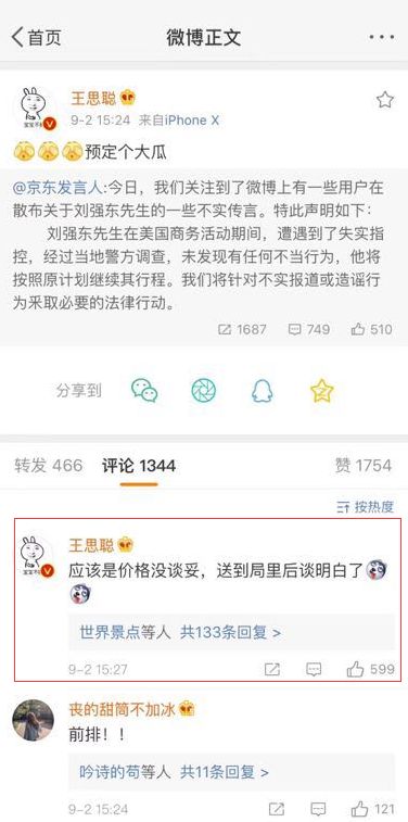 关于刘强东强奸一案,王思聪曾有表述,不可能是强奸,应该是价码没谈好。