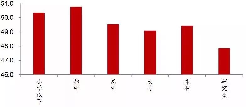 ▲图表:2015年我国不同学历背景女性平均生育率(‰)