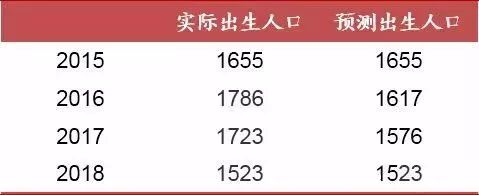▲图表:2015-2018年实际出生人口与预测出生人口(万人)
