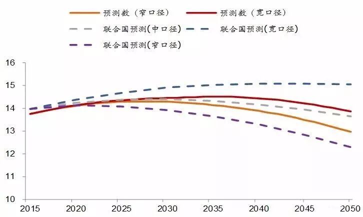我们对于总人口的两种预测结果,介于联合国宽、窄两种预测口径中间,这也从侧面反映了我们预测结果的稳健性。