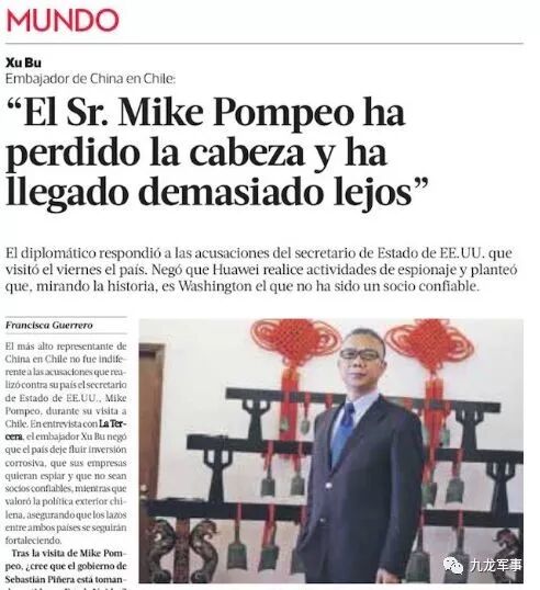 徐步大使4月13日接受智利主流媒体《三点钟报》的专访,斥责蓬佩奥先生已经失去理智,他走得太远了...蓬佩奥是个伪君子。