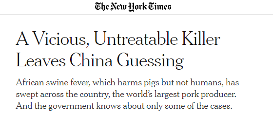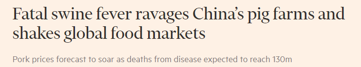全球主流媒体开始发现, 必须要认真评估这场史无前例的猪瘟对全球产业的冲击波了。