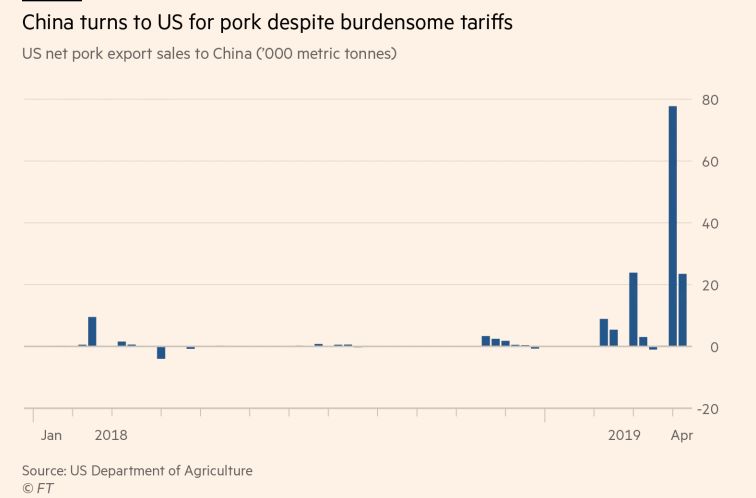 就连贸易战打得火热的美国,也开始向中国出口猪肉了。去年,中国将美猪的关税提高到65%,导致后来中国国内几乎再无进口美猪。但是近两个月来,中国开始加大对美猪的采购量,现在总量已经超过127000吨。在之后的贸易谈判中,取消对美猪的关税可能性也是存在的。