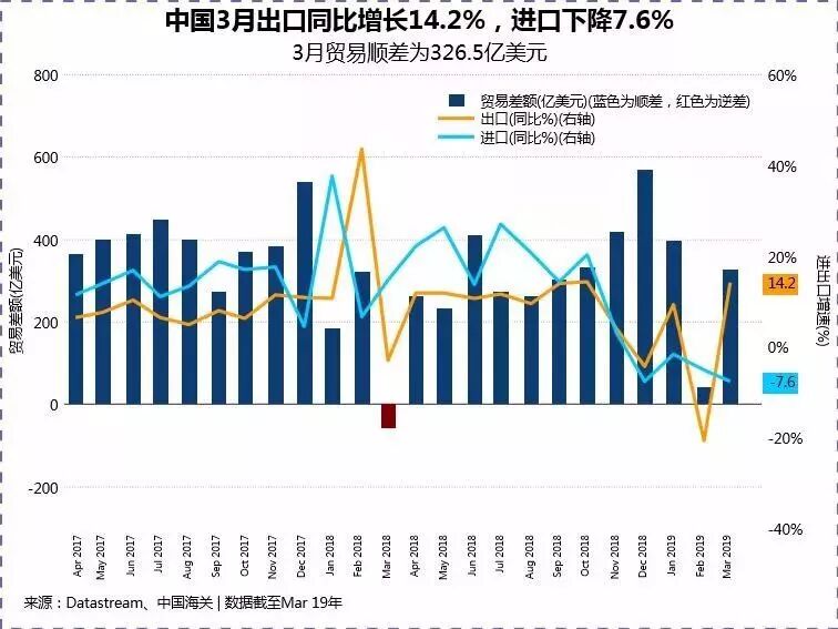 而根据我国海关总署的数据显示,以美元计算,中国3月出口同比增长14.2%,进口同比下降7.6%。一季度,出口同比增长1.4%,进口同比下降4.8%,贸易顺差为763.1亿美元,扩大了70.6%。也是典型的内需不足的特征。