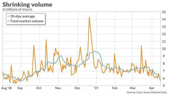 先看股市,虽然美股去年底剧烈下跌之后,今年出现了比较剧烈的反弹,股指又回到了去年的高点附近,但明显出现了股指与成交量的背离。