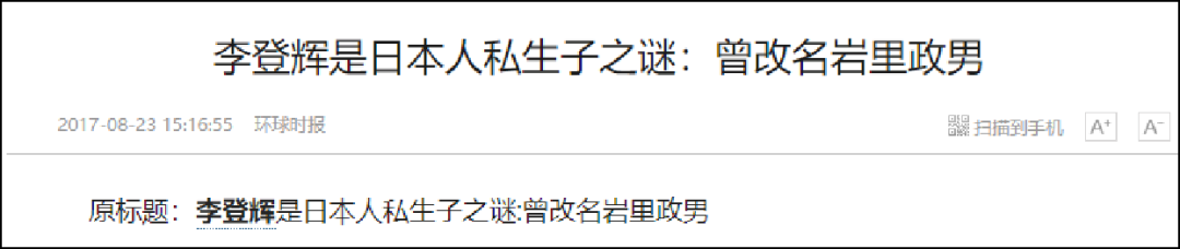 台独元老李登辉的日本名字叫做岩里政男,而且很可能是日本人的私生子!