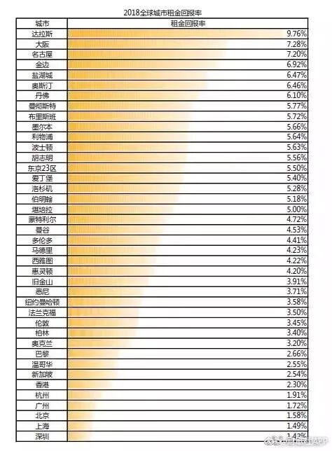 而中国的北上广深,租金回报率差不多在1.5%左右。