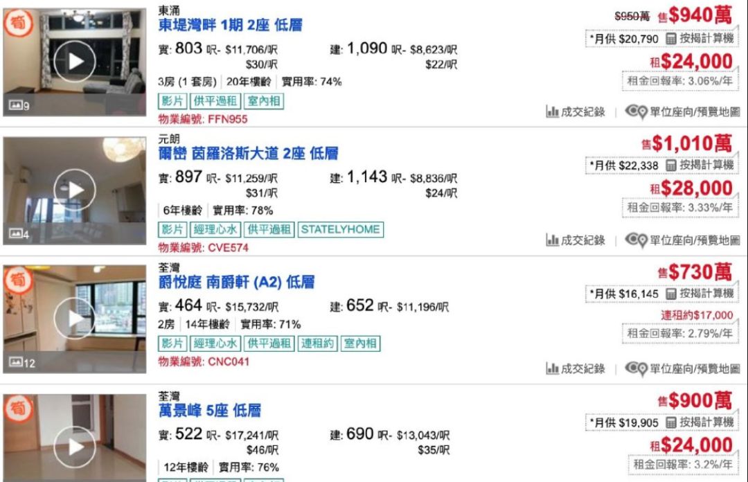 给你们看个图,香港房屋出租的租金回报率,差不多都在2.3~3%左右,小科普:一平米大概等于11尺。