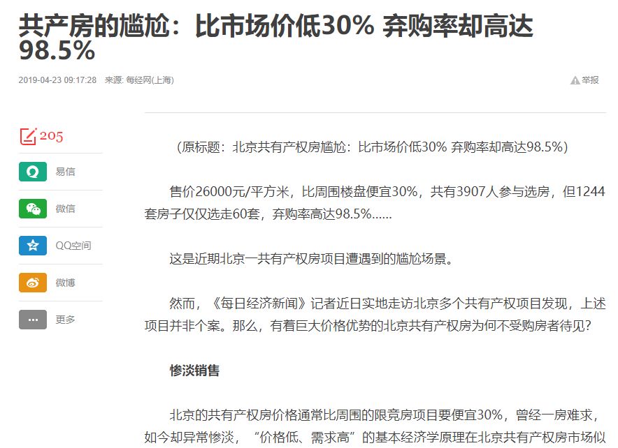 中国甚至没有真正的刚需,绝大部分买楼的人,都是追求增值而来。曾经专门为刚需研发的共有产权房,价格极低但是产权不多。这样的房子曾经在北京引发排队哄抢,被称之为刚需的救命恩人,如今弃购率高达98.5%,根本就没人要,随到随买,大部分房子都被弃购了。