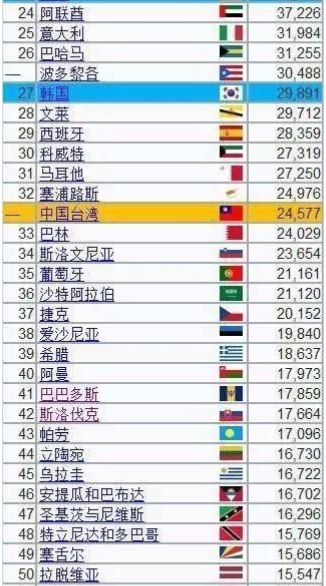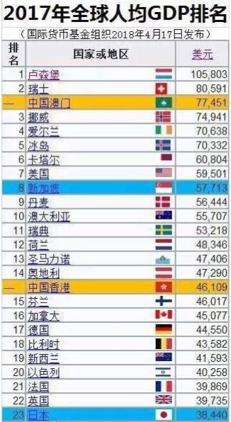 全球人均GDP排名