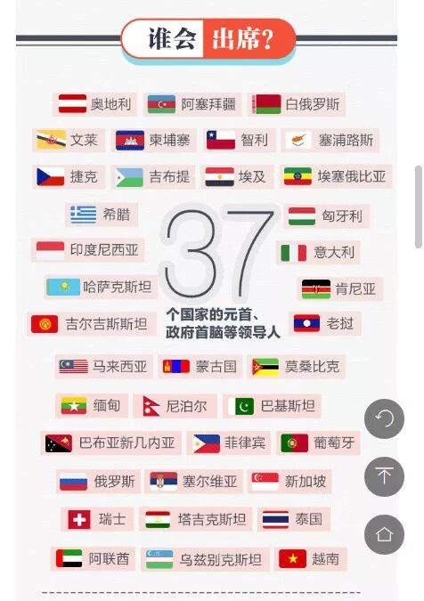 和2017年相比,今年出席峰会的大咖消失了5张老面孔——土耳其、西班牙、波兰、阿根廷、斐济,多了13张新面孔——奥地利、塞浦路斯、葡萄牙、文莱、尼泊尔、新加坡、塔吉克、泰国、阿联酋、阿塞拜疆、智利、吉布提、埃及、莫桑比克、巴布亚新几内亚。
