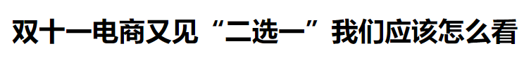 然而尽管东子网店服务了大众,但是很快他就遇上了人生中的第一道坎,这道坎叫做2选1。中国网民对2选1这事恐怕还有点记忆。毕竟当年企鹅厂和360度就曾经闹过2选1战争,要求用户只能从企鹅和360度两款软件中选择一个,否则就会系统冲突无法使用。(PS:笔者当年很没有出息地选择了鹅。) 鹅厂和360度的2选1很快被国家监管部门叫停,最后两家静下心了消了火气,各自向用户道歉了事,从此以后2选1这样的事基本就很少见了。