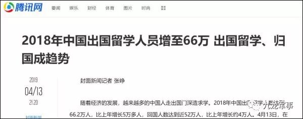 据教育部留学服务中心的数据显示,2018年中国出国留学人数有66.2万人,回国人数近52万人。