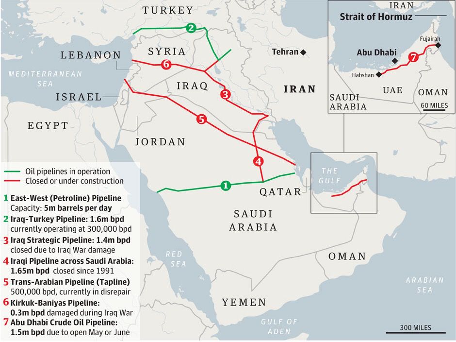 沙特阿拉伯伊拉克石油管道(IPSA):从伊拉克巴士拉至沙特延布以北的红海港口穆阿吉兹,石油运输量165万桶/日。但伊拉克战争爆发后,一直处于停运状态。