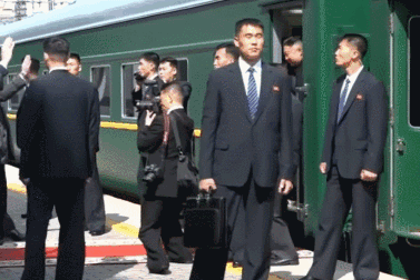 当地时间26日下午15时许,金正恩乘专车抵达符拉迪沃斯托克火车站。