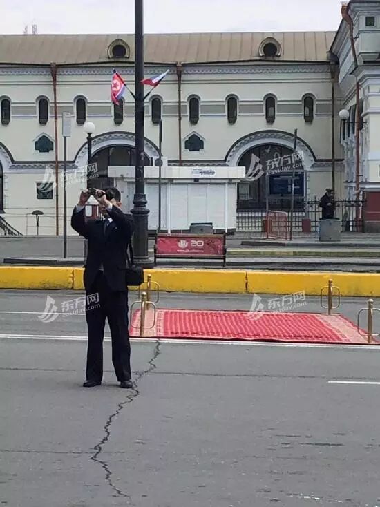 东方网·纵相新闻在符拉迪沃斯托克火车站看到,不少获知消息的媒体记者已经聚集在这里,仪仗队早早到达现场彩排。