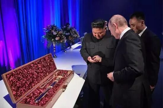 根据俄媒报道,会谈结束后,金正恩向普京赠送了一把朝鲜剑,并表示,“这代表着支持我们的人们,代表着他们的力量和精神”。