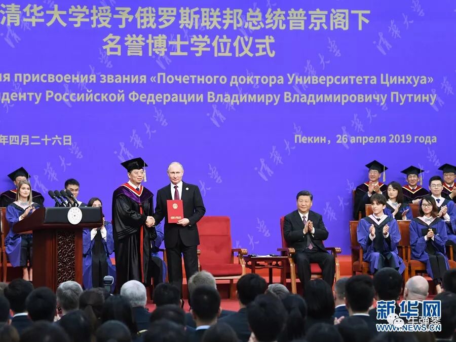 2019年风云再起,普京来华参加第二届“一带一路”峰会,作为一个特殊的安排,在他抵达北京的第二天,他就被清华大学授予名誉博士学位。