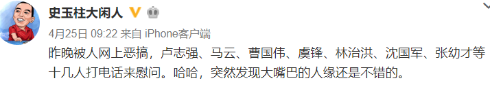 逼着史玉柱连续发微博向外界报平安,甚至学起了他的老朋友柳老英雄,抬出了一大批的商界大佬给自己撑腰。