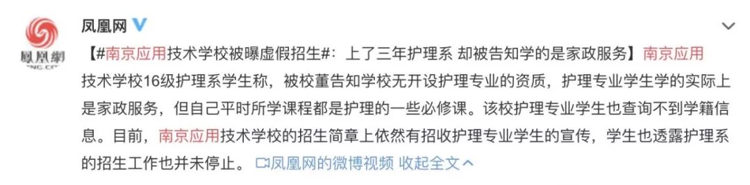 培训机构谎称自己有授予护理专业大专文凭的资格,家长以为自己家孩子去上了三年大专学成了护士,没想到是去培训机构学成了一名光荣的家政服务员。