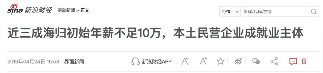 在80%的中国人工作十年月薪还不足一万块的时候。媒体已经在惊讶,居然有三成的海归留学生第一年的年薪不足10万元。