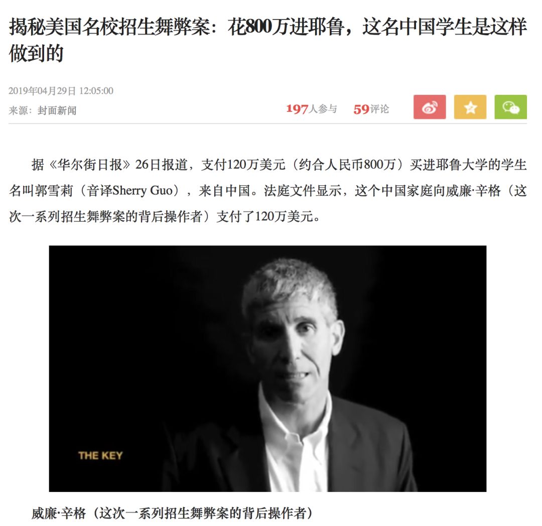 其中一名中国家长花了120万美元,约合人民币808万,让女儿得以足球特长生的身份进入了耶鲁大学。