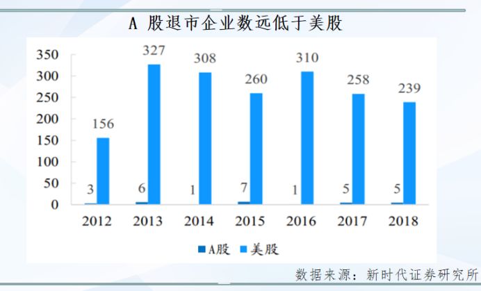 2018年被誉为退市大年,但是也仅仅只有5家上市公司退市,而同期A股上市公司的总数为3567家,这也就意味着就即使在退市大年里面退市率才0.14%,而美国纽交所的退市率年均达到8.3%,美股的退市率几乎是A股的60倍!
