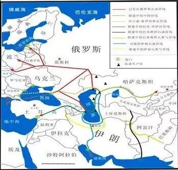 大家看看下面这个管线图就知道:伊朗可以通过自己的石油管线直接将石油转接到俄罗斯的石油管道中,只需在交接处增加一个流量计,每天流入俄罗斯的石油数量就能计算出来,然后再通过俄罗斯的石油管道运输到欧洲——俄罗斯充当一个中间商的角色,从中赚取差价。