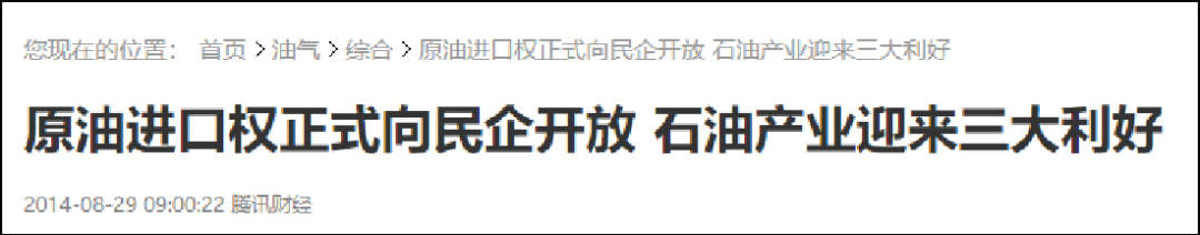 事实上,中国在2014年的时候已经开放民企石油进口权了,不过数量还比较少、许可量也比较低。比如广汇能源就得到了原油进口权,但是年许可量仅有20万吨!