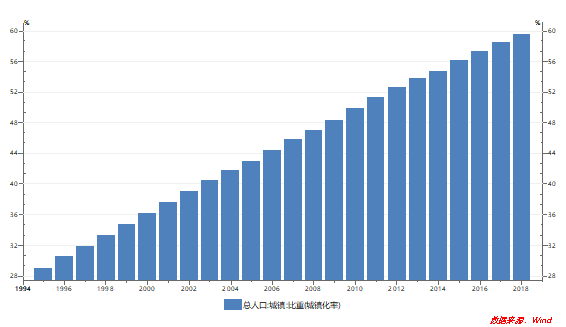 ▲国内城镇化率 数据来源:wind