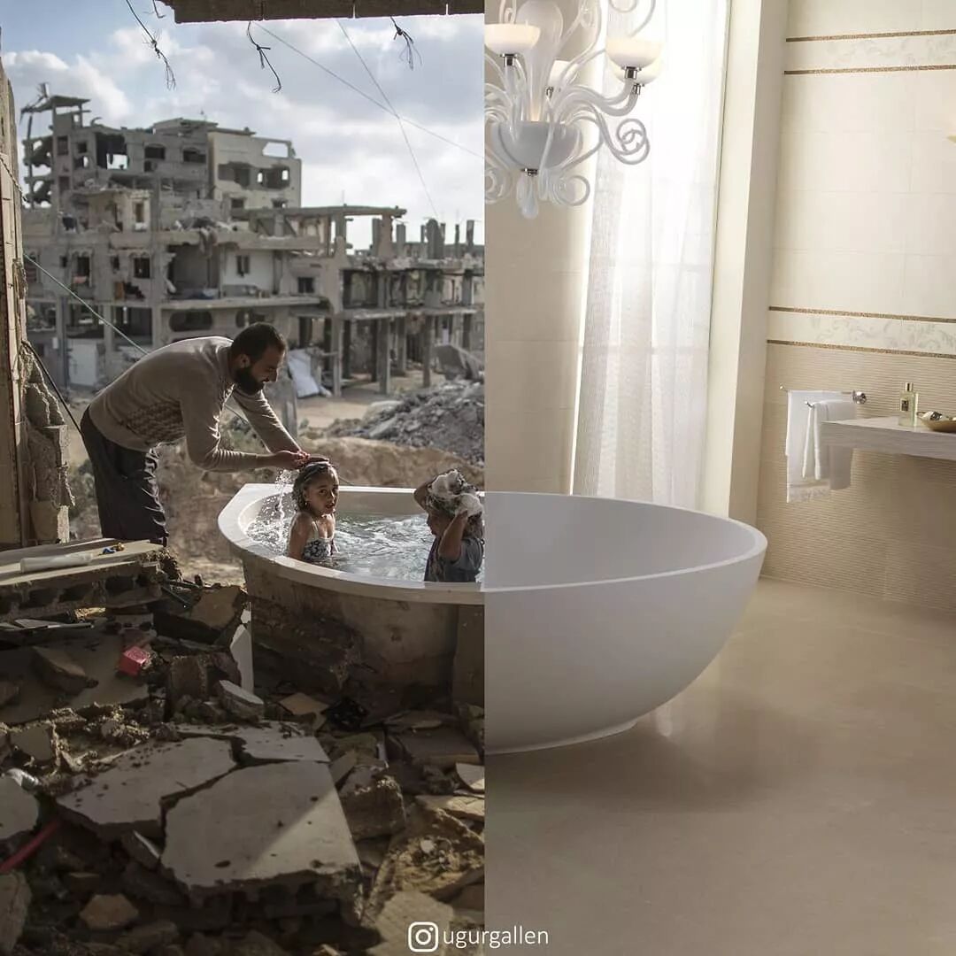 即便炮火连天已经成了生活常态,尽管美丽的家园已成回忆,就算没有豪华的浴缸,孩子们也要好好洗个澡。舒舒服服,干干净净,说不定明天就能迎来和平。