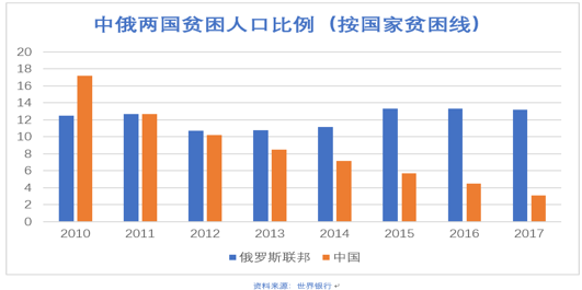 同样,在减少绝对贫困上,俄罗斯这些年来也进展迟缓,返贫人口比例在2013年出现了明显的反弹。2017年仍有13.2%的人口处于俄罗斯设定的国家贫困线之下(俄罗斯的贫困标准每季度动态调整,现在大约是月收入低于9662卢布,折合约840元人民币),即超过1900万人口处于贫困之中。